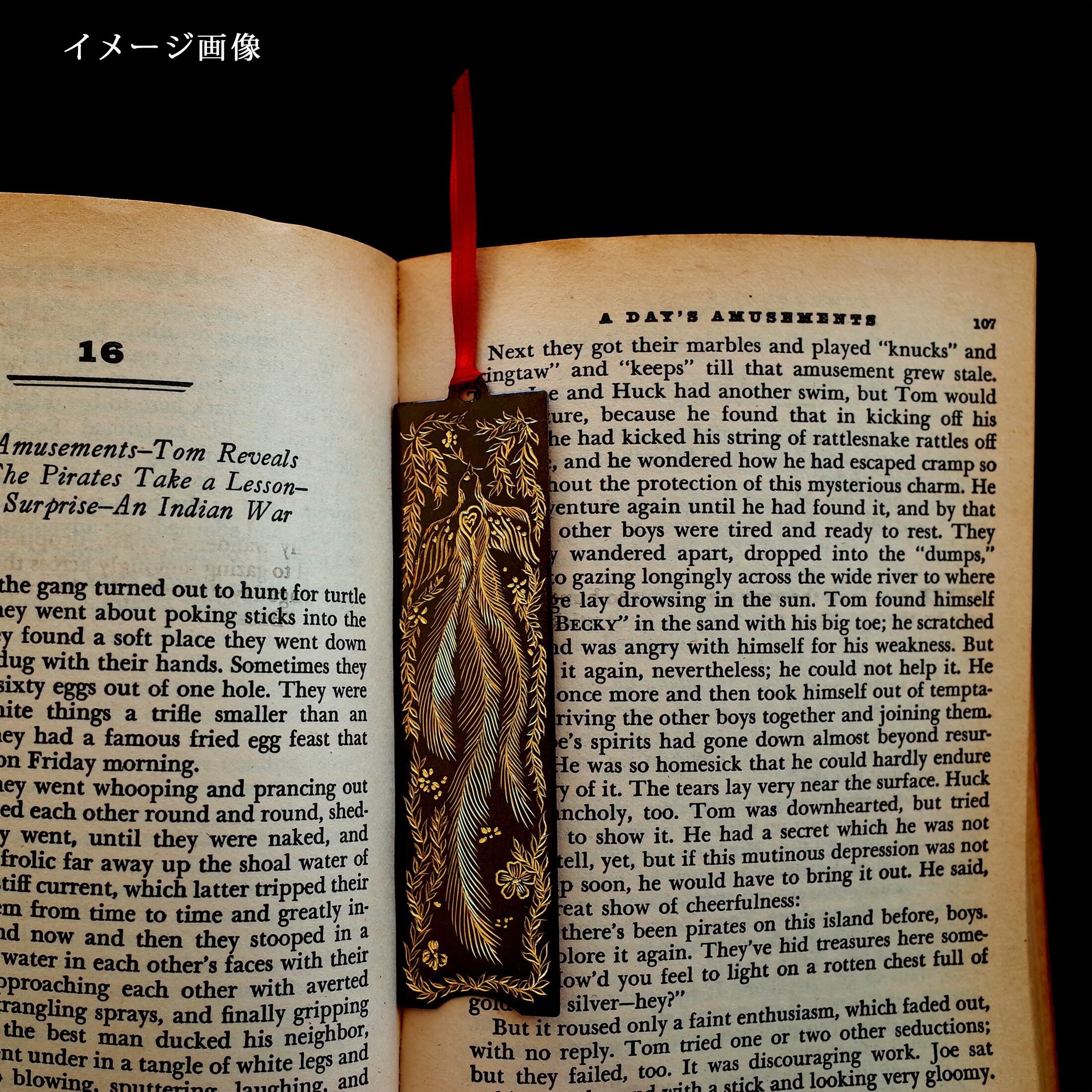 お花を届けに空を飛ぶ鳥と花唐草模様の彫金しおりです。