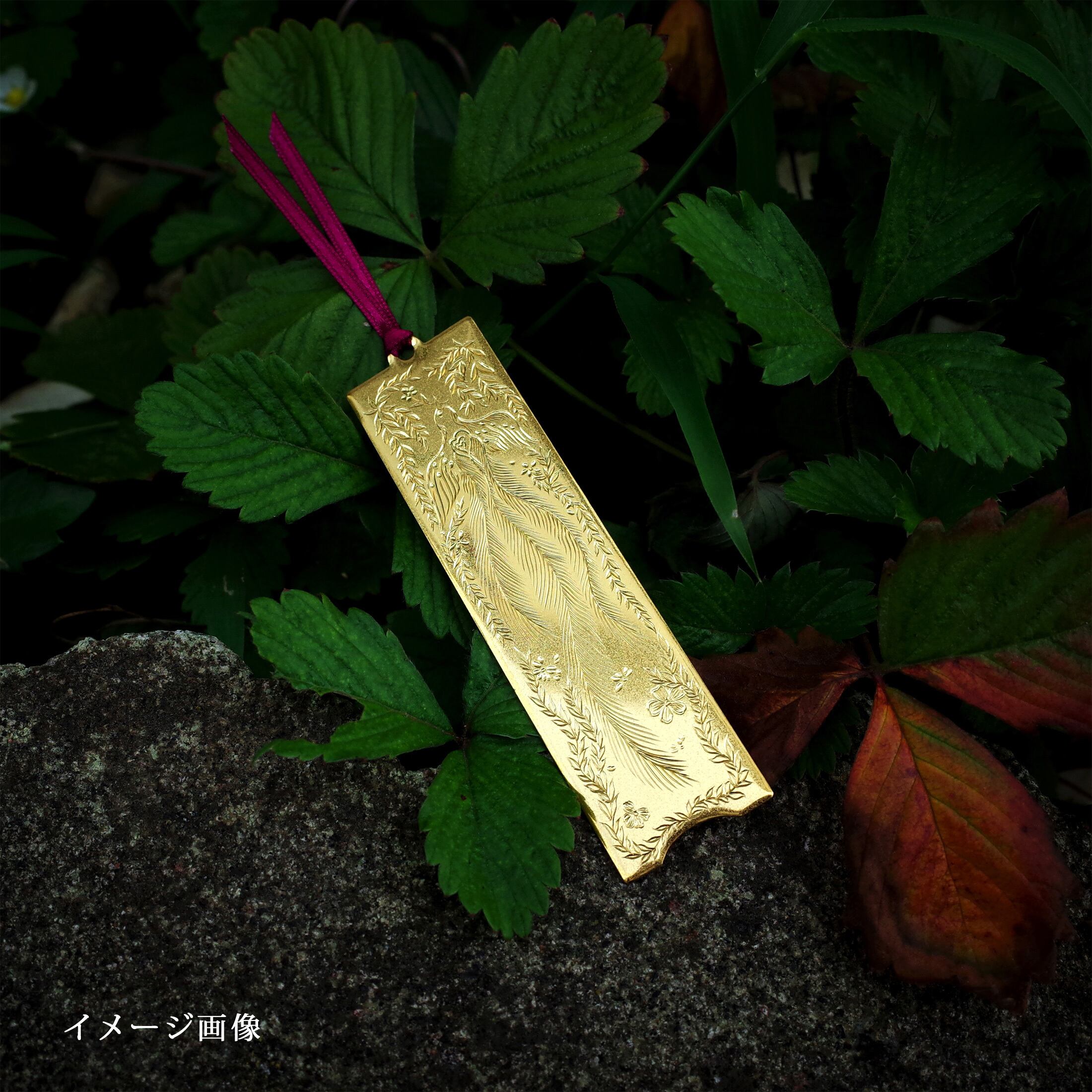 「片切り彫り」という彫金の技法で、筆で描いたような線を丁寧に彫刻しています。電鋳(エレクトロフォーミング)という方法を用い、とても薄い厚みで軽く仕上げてあります。